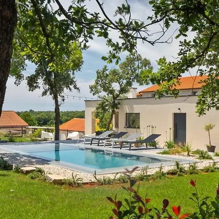 Die Modern Villa Casetta Molindrio With Pool In Porec bietet aus den Fenstern einen Blick auf den Garten. Zur Ausstattung des Badezimmers gehören auch eine Dusche. Gäste profitieren auch von einem Haartrockner und Badelaken.